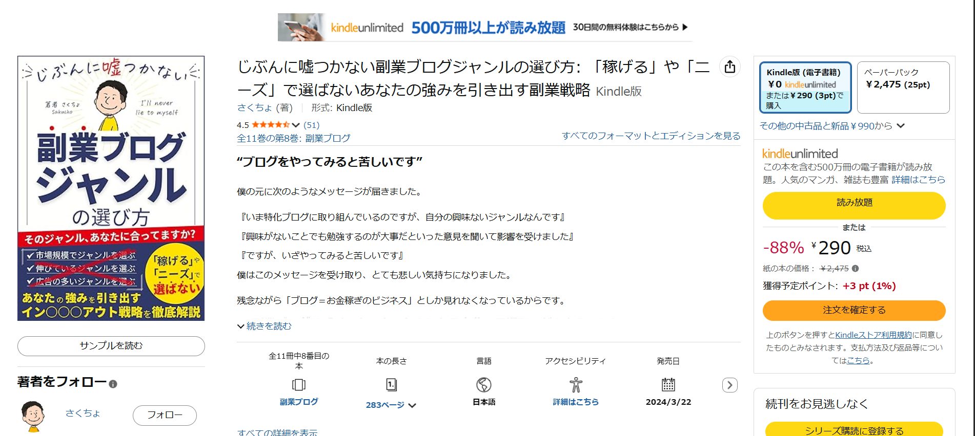 引用元:じぶんに嘘つかない副業ブログジャンルの選び方: 「稼げる」や「ニーズ」で選ばないあなたの強みを引き出す副業戦略 Kindle版